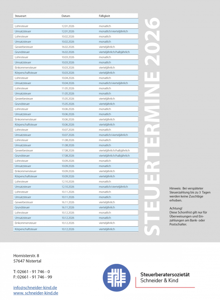 Willkommen bei der Steuerberatersozietät Schneider & Kind